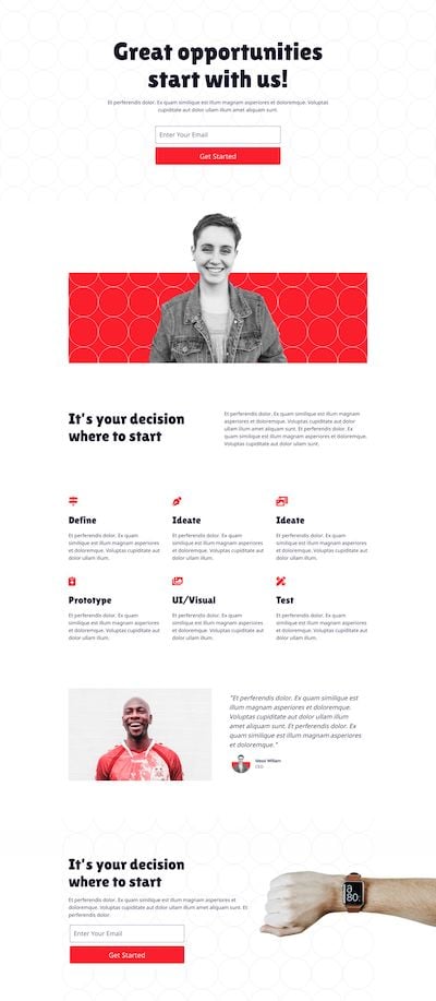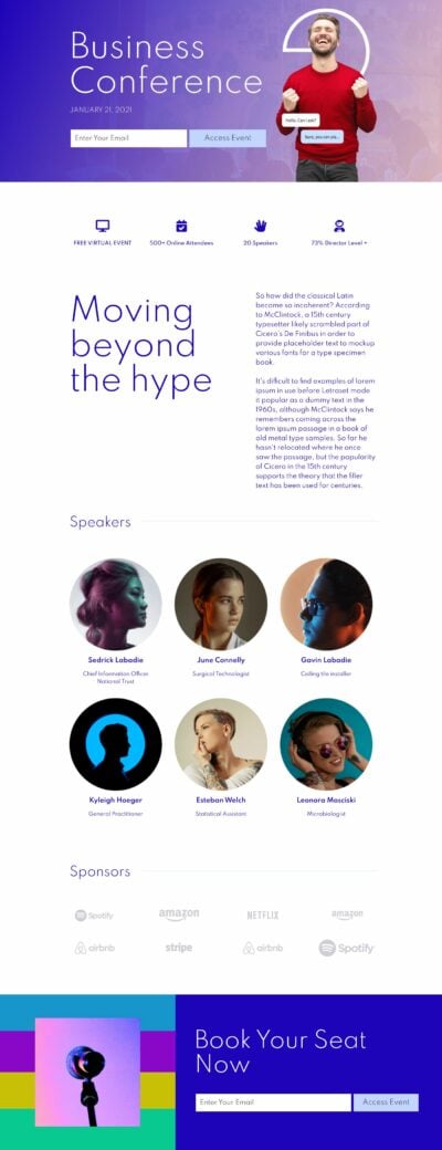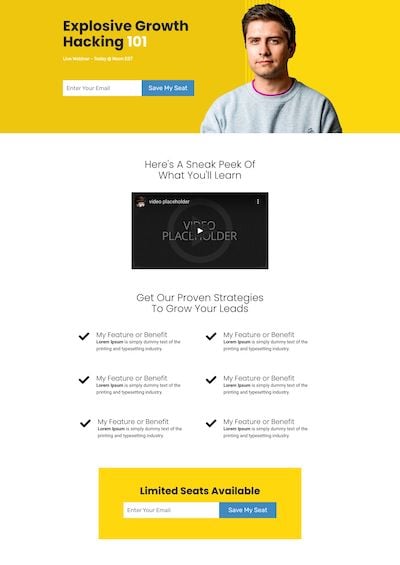 • Hero image or video: Your template should also have space to include a primary image or video at the top of the page. This is an effective way to communicate something essential about your offer and engage with visitors.