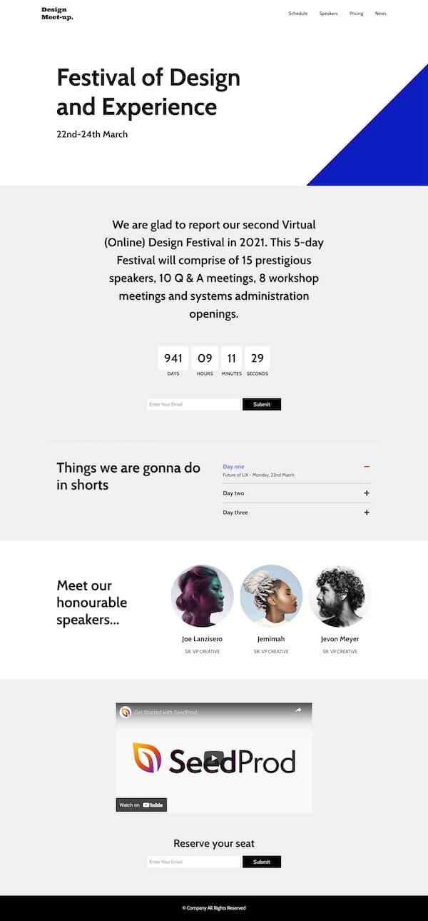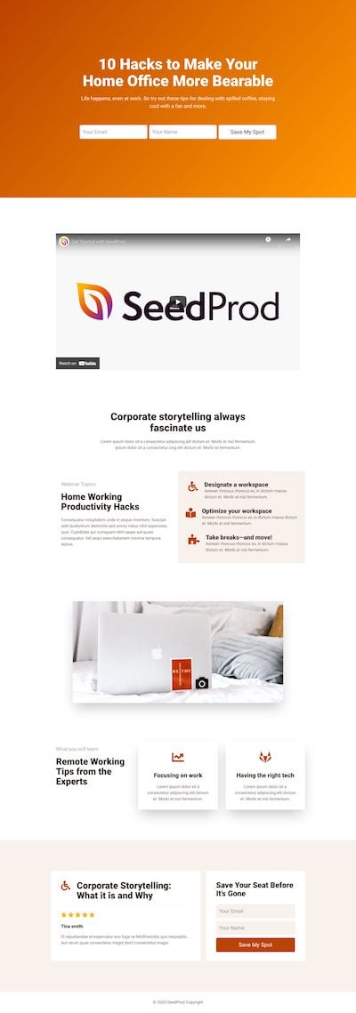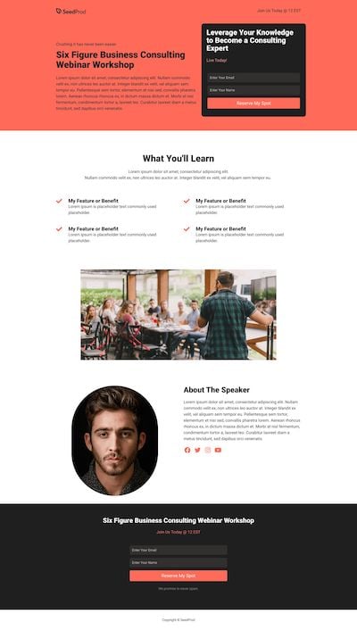 In SeedProd, you’ll find examples of many multipurpose landing page designs, including templates for: