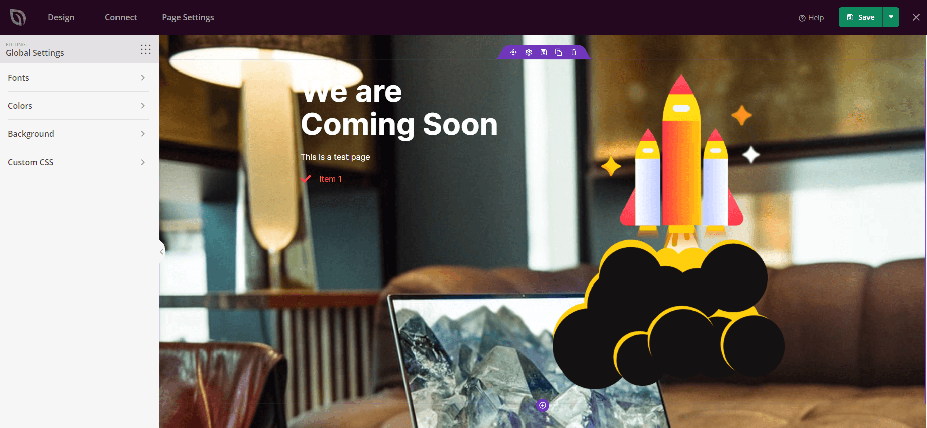 The Global Settings feature allow making changes globally to Landing Pages without having to update each element at a time. On this panel, you can set the global Fonts, Colors and Background. You can also add your own custom CSS which will be also applied to your page.